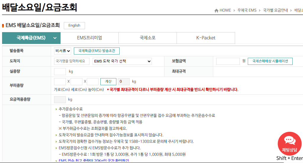 EMS 요금은 단순히 중량만으로 결정되지 않습니다.