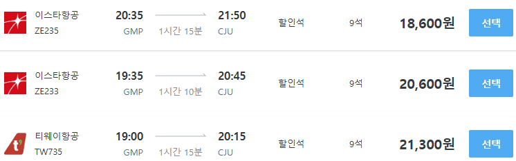 실제로 아래 링크를 통해 6월 9일(월요일 기준) 김포→제주 항공권을 검색해 보면 최저가가 확인된다.